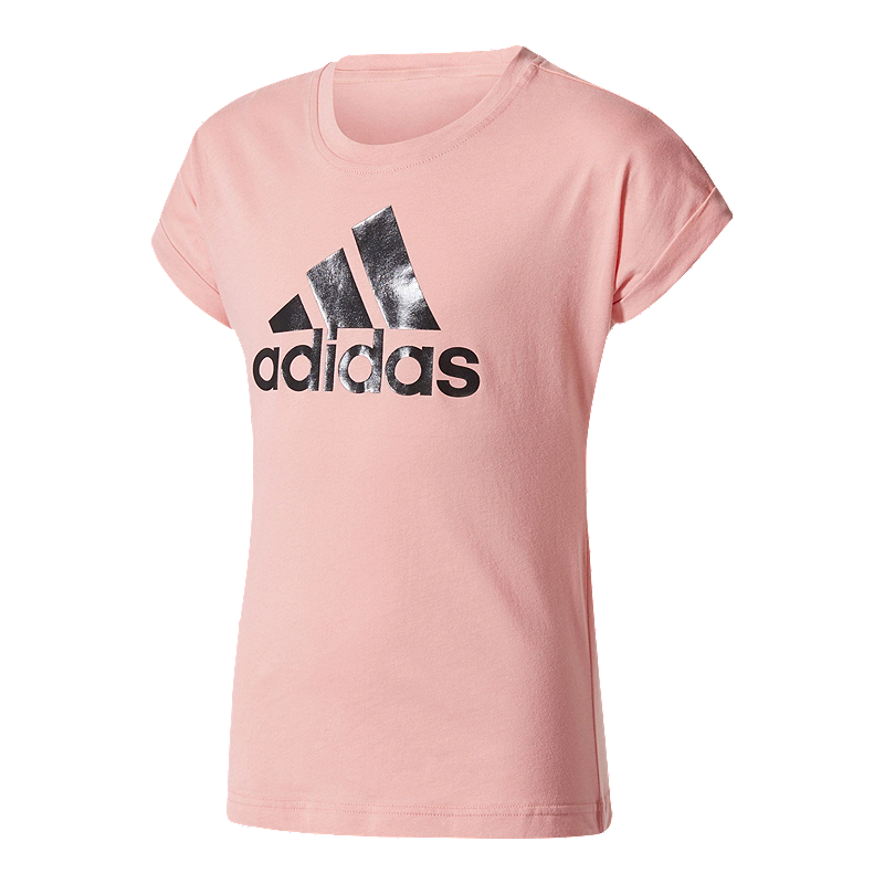 A casual look with a feminine edge, this junior girls’ t-shirt is cut for a slim fit with roll-up batwing sleeves. The soft cotton tee showcases a glossy adidas Badge of Sport across the chest.