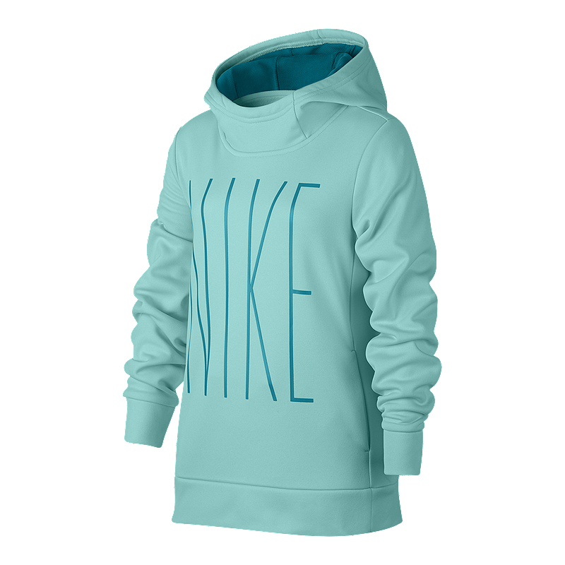 Delivering lightweight warmth in a versatile, pullover design, Girls’ Nike Therma Training Hoodie is made with brushed, fleece-constructed yarns for an exceptionally soft, comfortable feel.