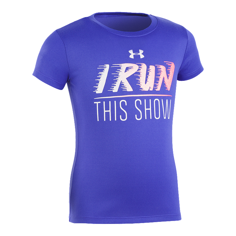 The Under Armour Girls’ 4-6X I Run This Show Short Sleeve T Shirt has a UA Tech fabric that is quick-drying, ultra-soft & has a more natural feel.