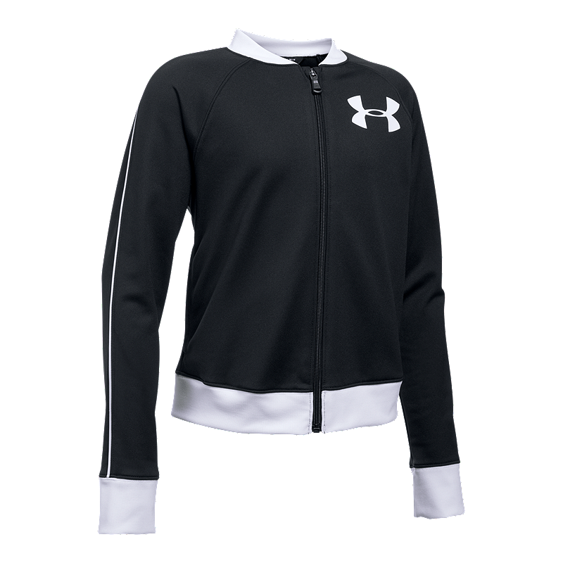 The Under Armour Girls’ Track Jacket has a smooth tricot knit fabric that is tough, with a soft, brushed interior to trap warmth.