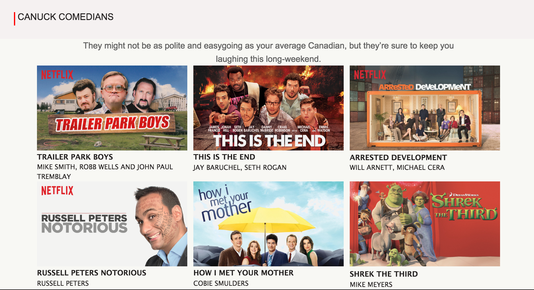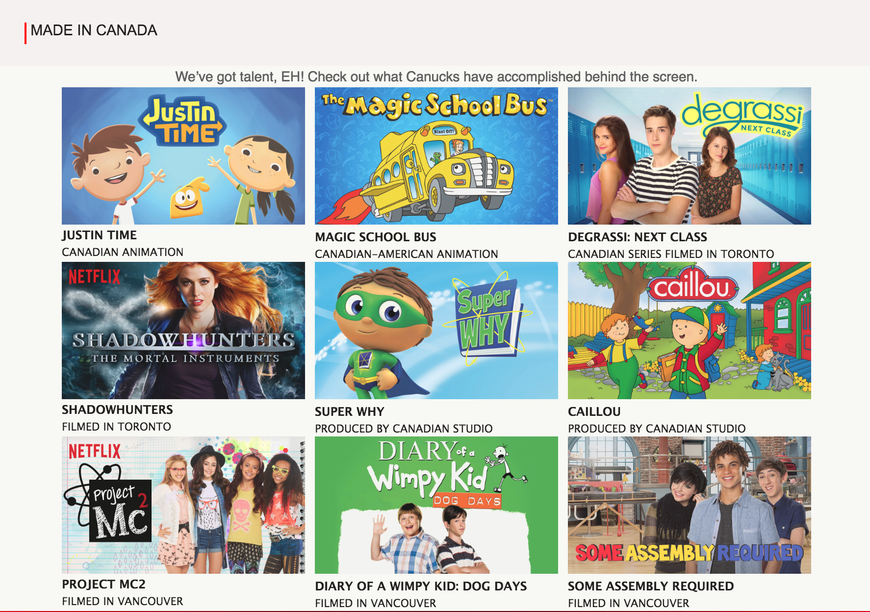 Netflix has a great array of Canadian made shows and films. There’s also lots of titles available that feature Canadian actors and actresses!