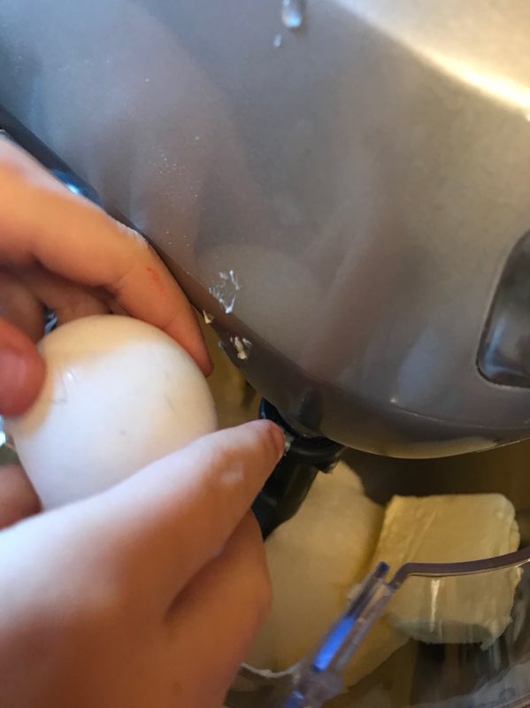 In a large bowl mix butter, sugar, egg, milk and vanilla together. Mix until well incorporated.