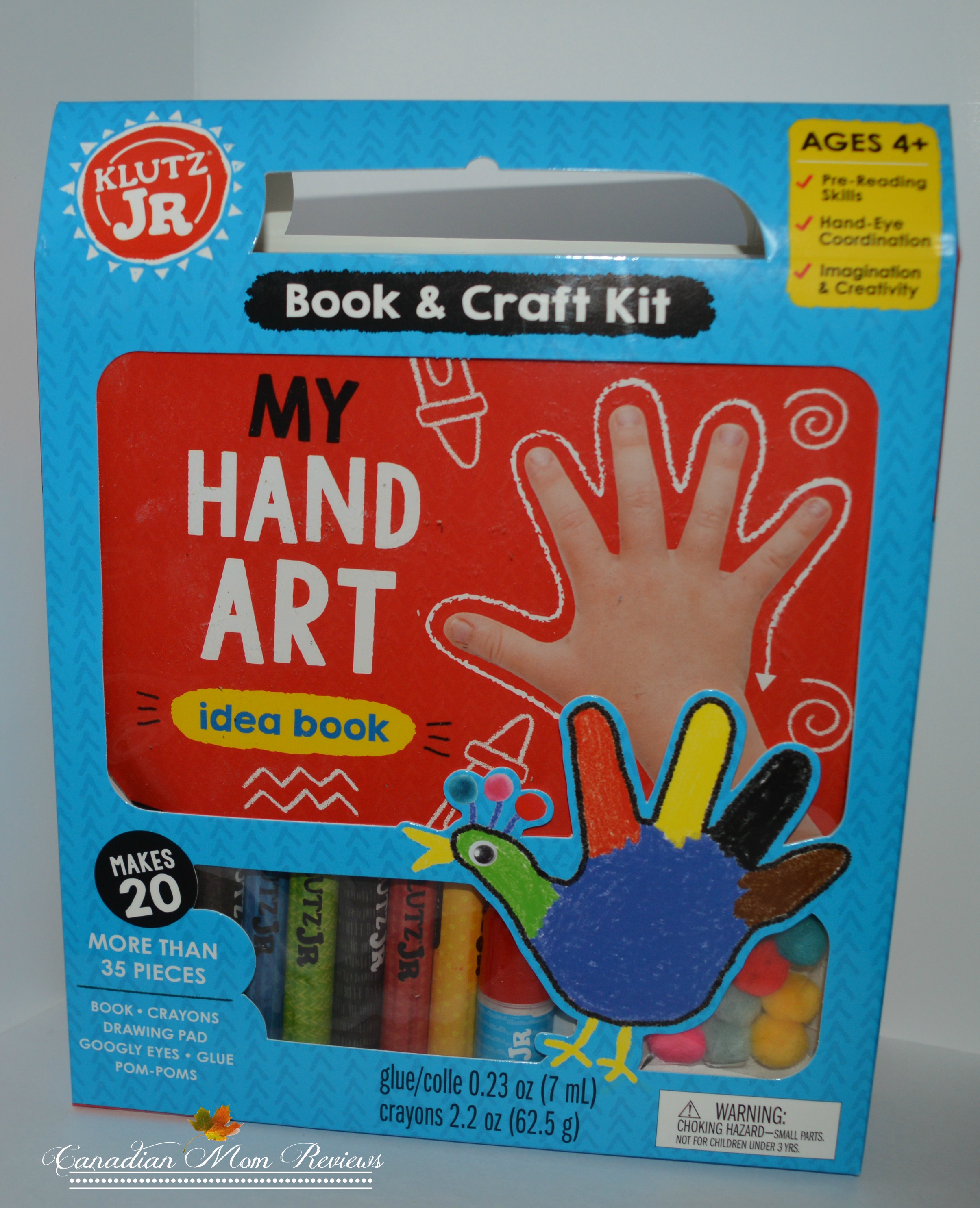 Klutz Jr. My Hand Art teaches kids how to draw 20 hand art designs. Pom-poms, goggly eyes, glue, and crayons are all included to promote fine motor skills and make this the handiest book and craft kit around!