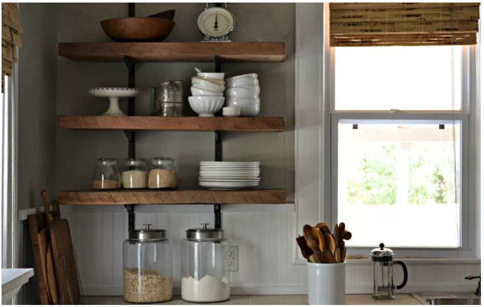 Putting up your own shelving is very simple. You can buy shelving kits at any good DIY shop that will provide you with everything that you need. The key here is measure up properly and mark the wall before you start drilling the brackets into the wall; if you get it wrong you’ll end up with random holes in the wall that look rubbish. Alternatively, you can find any second-hand pieces of wood that look nice and use them as the shelves. Buy separate brackets and fit them yourself.